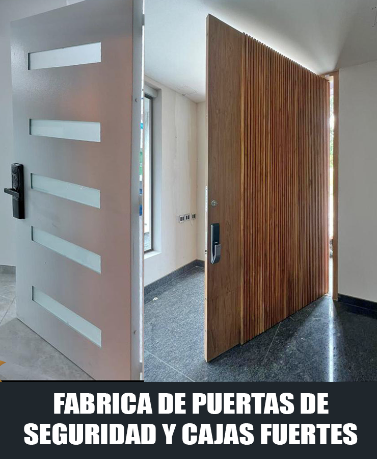 Somos fabricantes de puertas de seguridad blindadas contamos con más de 30 años de experiencia, puertas láminadas en acero alta resistencia para evitar intruciones con soplete o mortero , pasadores empotrados a muro y cerraduras de alta seguridadCAJAS FUERTES
